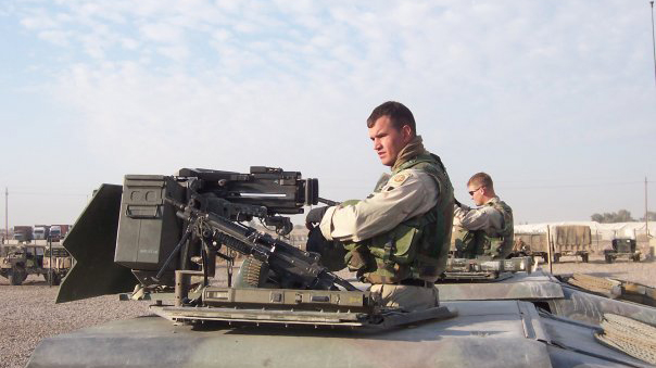 Irwin returned home for a few months and was then sent to Iraq. From FOB Mercury in Fallujah he helped provide heavy-gun security for convoys. IEDs (Improvised Explosive Devices) were becoming a daily occurrence, but the proper treatment for brain injury had yet to be implemented. In December 2003, Irwin’s unit was tasked with securing a route for the Iraqi Army’s recruitment efforts. He was in the turret of a truck trailing the rest of the convoy as it made a turn onto the main road. “I saw a fuel can on the side of the road,” he said. Through the headset, “I heard the I— in IED in my ear.” And then he felt the explosion.