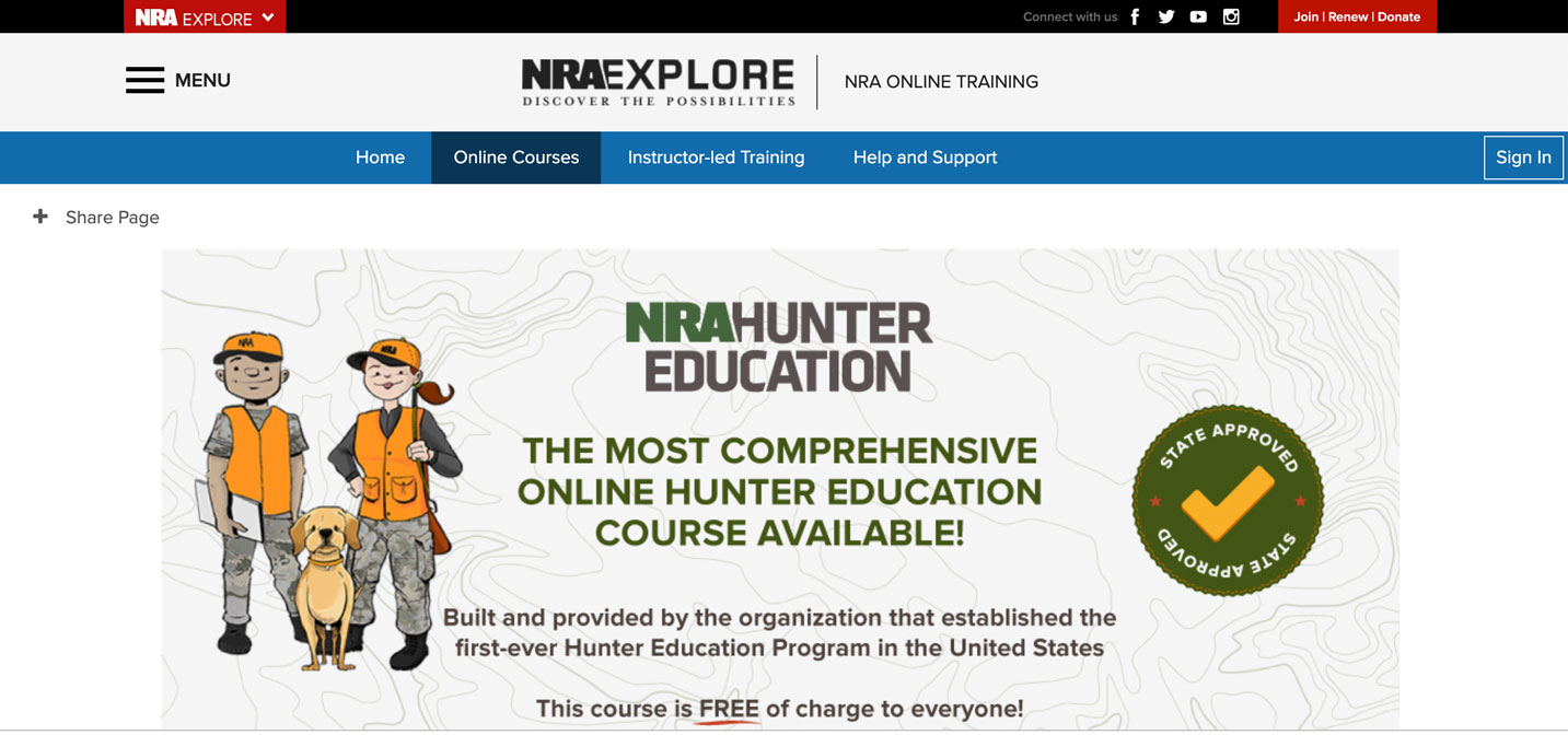 3. Take an Online Course: The NRA has many free online learning options from which hunters can choose. As covered by this NRA Hunters’ Leadership Forum website and other outdoor media, the two that are most relevant to hunters are the free NRA Online Hunter Education Course and the free online NRA Experienced Hunter Education course. The Online Hunter Education course is designed for new hunters and allows students to receive state-based hunter education certification in the growing number of states that have approved the use of our course. For those who would like to take the course even if their state doesn't accept it yet, you are welcome to register and take any other state's course you like. You might also inquire of your state wildlife agency why it doesn't offer the free online option from the NRA. The U.S. Fish and Wildlife Service has agreed that the course is an in-kind donation and your state can secure matching Pittman-Robertson dollars for wildlife conservation efforts in your state. The Experienced Hunter Education course is specifically designed for individuals who have not hunted in the past year or more and are looking for a safety refresher before they head back into the field. Both online courses are user-friendly, modern, fun and engaging. These are not the old, boring two-dimensional animation online classes. Everyone will learn something, and the information you learn could save a life.